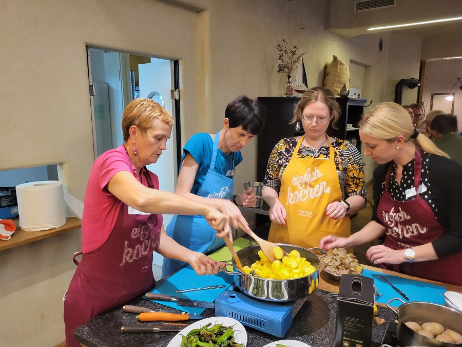 Schon beim Betreten der großzügigen Küche war klar: Hier wird heute nicht nur gekocht, sondern auch über den Tellerrand geschaut. Zu den Namensschildern gab es Schürzen, statt Konferenzunterlagen Pfannen und Töpfe. Die anfängliche Skepsis in den Gesichtern der Teilnehmer wich schnell einer Mischung aus Neugier und Vorfreude.