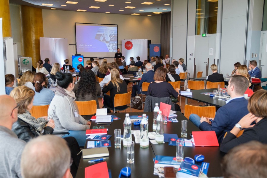 Der zweite Konferenztag beginnt genauso spannend wie der erste geendet hatte. Die Transferforscherin Ina Weinbauer-Heidel (Institut für Transferwirksamkeit) stellt ihren Zuhörern Methoden und Tools vor, um Seminare sofort wirksamer zu machen, und zwar mit sehr kleinen und günstigen Schritten. Denn laut Forschung ergibt sich bei 85 % der Teilnehmer an Schulungen kein langfristiger Transfererfolg in die Praxis. So lautet z. B. ein konkreter Tipp der Expertin, im Seminar mindestens 1,5 bis 2 Stunden für Transfermaßnahmen einzurechnen und konkrete Handlungen zu planen. Diese Handlungen sind im Optimalfall Mini-Schritte, da die Schulungsteilnehmer sonst mit der Umsetzung überfordert sind – und nichts passiert.