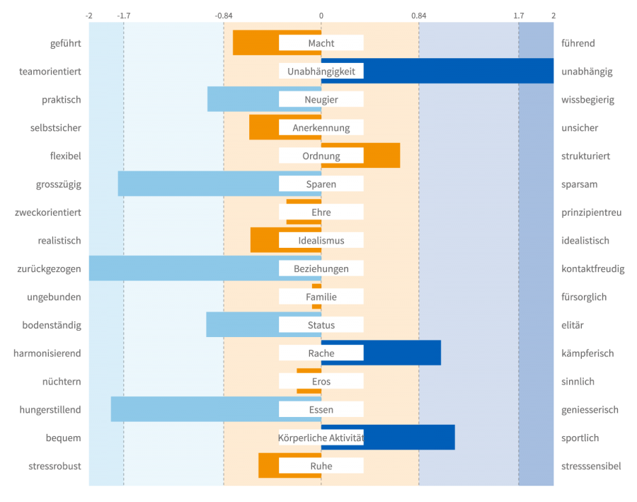 Der amerikanische Psychologe Steven Reiss hat in den 1990er-Jahren das Reiss-Motivation-Profile entwickelt. Dabei geht er davon aus, dass unser Leben von 16 Lebensmotiven bestimmt wird. Jeder Mensch trägt alle 16 Lebensmotive in sich, jedoch in unterschiedlichen Ausprägungen. Mittels eines standardisierten Online-Fragebogens, der aus 128 Fragen besteht und in ca. 20 bis 30 Minuten ausgefüllt werden kann, erhält man sein persönliches Profil und damit einen Blick auf sich selbst. Beispiele für die Lebensmotive sind Faktoren wie »Macht«, »Neugier«, »Beziehungen«, »Ruhe« oder »Status«. Eine Person mit einem stark ausgeprägten Macht-Faktor wird beispielsweise gerne Macht ausüben, und z. B. in einer Führungsrolle bessere Figur machen als jemand, der dieses Motiv weniger stark ausgeprägt hat.
